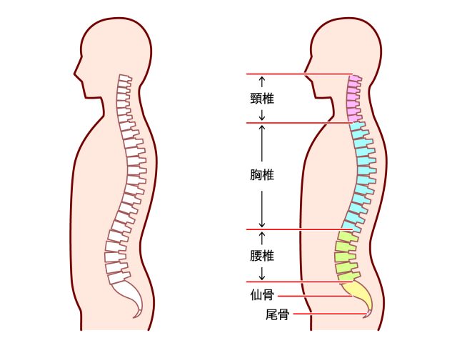 この腰椎(ようつい)に、頭部分の頚骨(けいこつ)と背中部分の胸椎(きょうつい)を含めた32~34個の骨が「背骨」と言われています。