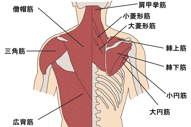 肩をすくめる動きをした時に痛みが生じる場合には、この僧帽筋に問題が起こっていると考えられます。
